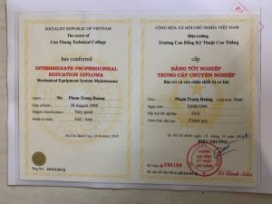 - Bằng trung cấp chính quy