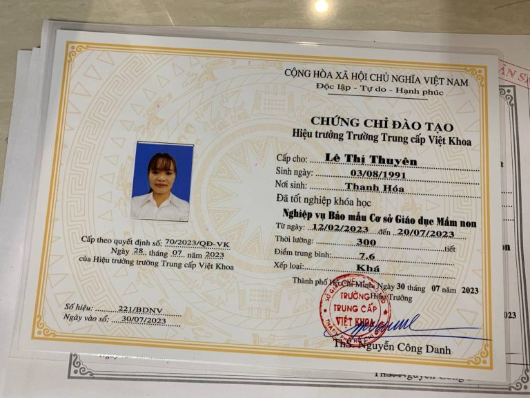 - Bằng trung cấp nghề: cơ khí, điện công nghiệp, điện dân dụng, nghiệp vụ bảo mẫu mầm non,…