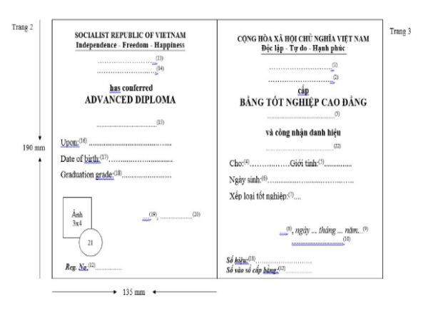 - Tóm lại, kích thước và thông tin ghi trên bằng tốt nghiệp cao đẳng là những yếu tố quan trọng trong việc sản xuất mẫu bằng tốt nghiệp đẹp và chất lượng. Việc đảm bảo tính chính xác và đầy đủ của thông tin trên bằng là điều cần thiết để đảm bảo tính hợp pháp và xác thực của giấy tờ.